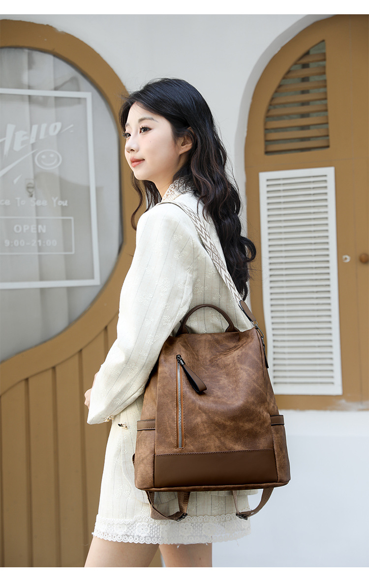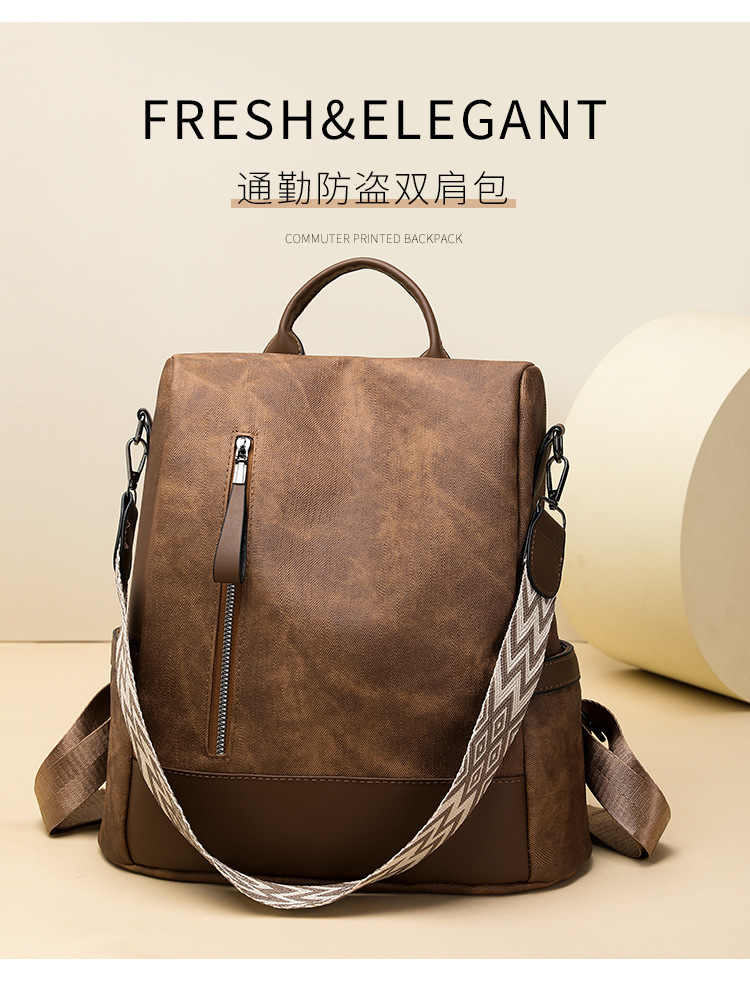 百搭軟皮防盜雙肩包